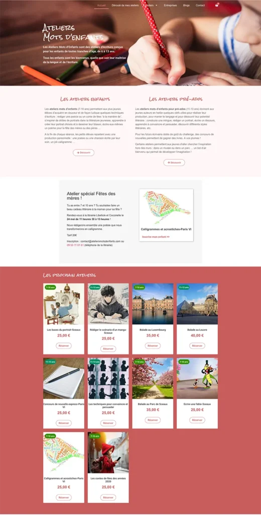 Ateliers Mots d’Enfants – création d’un site de réservation d’ateliers